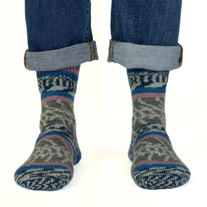 The Virgin Wool in this self-striping yarn comes from the Swabian Jura (Swabian Alps range) in Germany, characterized by durability and comfortable wearability. The yarn is reinforced with Biodegradable Nylon for long-lasting, heirloom quality garments. The short transport routes employed while processing these fibers makes for an eco-friendly footprint.